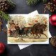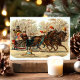 Beautiful vintage Christmas sleigh ride postcard. This design features two gorgeous horses and a family in their sleigh dashing through the snow with their dog.