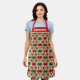 Vintage Christmas Stars and Bows Pattern apron . A seamless pattern featuring red and green bows intertwined with vintage-style stars. The background is a soft pink, creating a whimsical and nostalgic feel. The bows are detailed, showcasing their textures, while the stars have a classic vintage design, adding a playful touch. The overall composition should be harmonious, with the colours balanced to enhance the cheerful, festive atmosphere of the pattern.