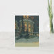 Vintage illustration Christmas scene showing the front of a snow covered house with Christmas wreaths in the windows.