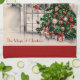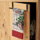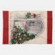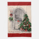 Holiday Kitchen Towel with a vintage Christmas window scene of the Christmas tree and lights shining at night by a beautiful window.