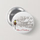 A black and white sketch of a Victorian village with the only colour being that of the street lamp and Christmas decorations. Reprinted on this holiday button.