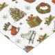 A Unique Vintage Christmas Tablecloth Patterned In Stocking, Trees, Wreaths, Ice Skates, Candles And Gifts.