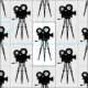 VINTAGE CINE CAMERA AND TRIPOD MOTIF FABRIC
