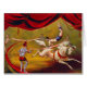 Vintage poster advertising a circus with performers in a ring. An acrobat performs on a horse while clowns hold banners. From an original 19th century (1875) lithograph by Gibson & Co. All Rights Reserved © 2013 padre art