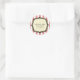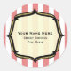 A circus themed address sticker featuring a background of faded red and white stripes. Personalise with your name and address inside golden bracket frame outlined in black. Matching items available at Jill's Paperie.