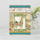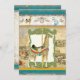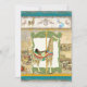 This Birthday Party invitation features a vintage circus poster image in the background along with original watercolor artwork by Audrey Jeanne Roberts to give an antique feel yet it is brand new art! Perfect for a young boy, adorable and yet with the feel of wild jungle animals in bright modern colours, setting the tone for a great Circus themed birthday! The central image is a hand painted Giraffe Carousel Horse Animal with elegant detail in the saddle, and golden pole. It is set in very detailed swirled leaf frame of antiqued lime green, overlaid on an aged, grunged, worn, sanded away vintage circus poster image with grey and deep harvest gold colours. The top border is of original art carousel animals painted by Audrey Jeanne - a white horse, a blue seahorse, the giraffe and a bunny on each end. The background papers on this design are worn, aged, stamped, inked and painted with various shades of cream, tan, brown and deep red.
