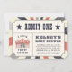 Come one, come all! Charming baby shower invitation takes its cue from vintage style circus tickets, with "admit one" printed at the top in playbill lettering. "A little peanut is on the way" appears alongside a watercolor circus tent illustration.