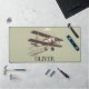 Personalised beautiful, stylish vintage classic biplane drawing desk mat for aviation enthusiasts.