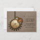 This unique Vintage Clock Wedding Response Card in mocha brown features antique steampunk clocks and gears hanging by a metal bead chain. The background has a textured paper and mesh overlay which adds a distressed and grungy feel to the design. This quirky and offbeat wedding RSVP card would be perfect for a steampunk inspired wedding. Easy to customise, simply add your wedding details in the spaces provided. Click on the "Customise It" button to find additional personalisation options.