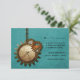 This unique Vintage Clock Wedding Response Card in turquoise features antique steampunk clocks and gears hanging by a metal bead chain. The background has a textured paper and mesh overlay which adds a distressed and grungy feel to the design. This quirky and offbeat wedding RSVP card would be perfect for a steampunk inspired wedding. Easy to customise, simply add your wedding details in the spaces provided. Click on the "Customise It" button to find additional personalisation options.
