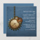 This unique Vintage Clock Wedding Invitation in royal blue features antique steampunk clocks and gears hanging by a metal bead chain. The background has a textured paper and mesh overlay which adds a distressed and grungy feel to the design. This quirky and offbeat wedding invitation would be perfect for a steampunk inspired wedding. Easy to customise, simply add your wedding details in the spaces provided. Click on the "Customise It" button to find additional personalisation options.