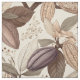 Hand drawn cocoa pods, blossoms, and textured leaves in soft neutral tones on light background. Elegant botanical artwork with natural flow and detailed linework for refined interiors.