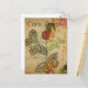 It's a replica of a vintage French postcard featuring colourful butterflies and pink roses