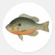 This vintage style fish sticker celebrates sunfish, also known as bream, sun perch, sunny, and other names. The sunfish family includes some of North America's most colourful freshwater fish. Sunfish often display hues of green, blue, red, orange, copper, yellow, and other colours. Sunfish are among several small freshwater fish that are known collectively as panfish.