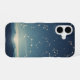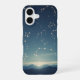 Retro scene of a starry sky illuminating a mountainous landscape in a soft and calm atmosphere.