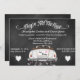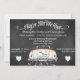 Future guests will totally love this chic, unique chalkboard typography post wedding reception invitation. A variety of fonts and a unique, vintage convertible, make for an easy to personalise after the wedding celebration invitation. Just use the given template for a total custom look. Chalkboard typography gives a vintage feel while remaining a hot trend. Don't miss out on this one of a kind wedding design. Would you like a special coordinating RSVP card, postage or accessory? Just shoot me an email! Convertible clip art compliments of Delightful Doodles Designs.