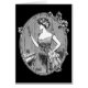A vintage illustration of a lady in a corset adorns these t-shirts and other items.