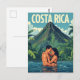This stunning vintage-style postcard captures the lush, tropical beauty of Costa Rica. It features a serene couple embracing in a natural hot spring, with a majestic volcano rising in the background and vibrant jungle foliage all around them. The design evokes a sense of romance, adventure, and tranquillity. Perfect for sending to loved ones, adding to a travel journal, or using as unique wall decor. It's a great souvenir or gift for anyone who loves nature, travel, or the beautiful country of Costa Rica.