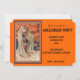 Vintage Halloween illustration of a young woman in costume with several jack o lanterns behind. Bright orange background. Text is customisable
