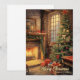 Vintage cosy interior Christmas tree and fireplace Holiday Card