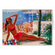 Vintage French and European Travel Advertisements - Beach, village, people, blue sea and sky illustration