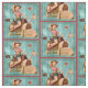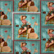 This is a vintage cowgirl sitting on a wooden horse. I have replaced the original background with a distressed turquoise wood fence background. There is also 2 small borders around the edges.