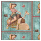 Vintage Cowgirl On Wooden Horse Western Fabric