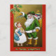 Vintage creepy Santa with mistletoe Christmas postcard. I guess he's looking to smooch this young girl? What's wrong with him? High quality, restored vintage image.
