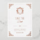 Announce your celebration with this vintage crest monogram save the date, featuring luxurious rose gold foil accents and refined formal typography. Perfect for elegant weddings, black-tie events, or romantic destination celebrations, this design combines timeless sophistication with a modern metallic touch. Ideal for couples who love classic details, warm tones, and luxury paper finishes.
