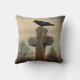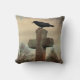 Distressed art on a pillow of a Gothic crow on a old cross.