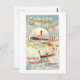 This postcard is a reproduction of a vintage advertising poster for the Cunard Line ship visiting New York, the Mediterranean, and the Adriatic.