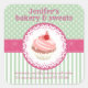 Vintage cupcakes bakery polka dots stripes square sticker