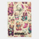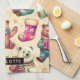 Vintage Cute Winter Teddy Bear Pattern Tea Towel