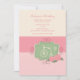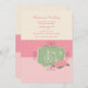A charming invitation featuring a vintage cycle in a decorative frame, embellished with a cluster of pink roses. The three-tier background is cream with a wide pink band centre and a polkadot bottom. (FP)