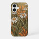 Retro illustration of a garden filled with stylized daisies in natural and warm tones.