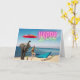 Fun and funky birthday card for a 21st birthday features vintage dancer photo cutout with elephant and mouse carrying parasols, neon "Happy 21st Birthday" text on a blue ocean sky background