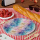 Vintage dandelion abstract pattern paper plate featuring delicate seed heads layered over rich teal, pink, and muted purple watercolor textures. Dreamy and artistic with an ethereal mixed-media aesthetic, this seamless design is ideal for botanical art lovers, boho style fans, nature enthusiasts, and vintage-inspired decor admirers.