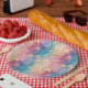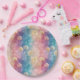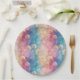 Vintage dandelion abstract pattern paper plate featuring delicate seed heads layered over rich teal, pink, and muted purple watercolor textures. Dreamy and artistic with an ethereal mixed-media aesthetic, this seamless design is ideal for botanical art lovers, boho style fans, nature enthusiasts, and vintage-inspired decor admirers.