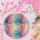 Vintage dandelion abstract pattern paper plate featuring delicate seed heads layered over rich teal, pink, and muted purple watercolor textures. Dreamy and artistic with an ethereal mixed-media aesthetic, this seamless design is ideal for botanical art lovers, boho style fans, nature enthusiasts, and vintage-inspired decor admirers.