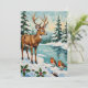 Vintage Deer and Robins Christmas Scene Holiday Card
