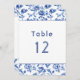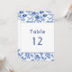 This elegant seating table number design features the same timeless blue and cream colour palette with a vintage floral frame, creating a cohesive look that complements your wedding theme. Each table number is prominently displayed in classic serif fontsnfor easy seating arrangements. The intricate floral border and refined typography ensure that this seating chart is not only functional but also a sophisticated addition to your reception décor. Perfect for formal weddings, this design brings together tradition and elegance, guiding your guests to their seats with style.