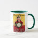 Our cheerful, inspirational mug for gardeners, vegetable growers and allotment holders features a vintage British WW2 poster of a pretty brunette with a big smile on her face as she triumphantly shows off her prize vegetable, a nutritious cauliflower grown in her own garden at home. She has a Forties style hairdo and is dressed in a colourful red shirt. She is leaning on a red garden fence beside her gardening tools, a rake and hoe. The caption reads, Dig for Victory. Grow your own Vegetables. The poster was produced by the British War Information Office during the Second World War to encourage people to help the war effort and reduce food shortages by growing their own food at home. Themug would be the ideal gift for gardeners and allotment holders.