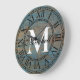 Vintage Distressed Antique Wood Unique Monogram Large Clock