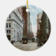 Beautifully hand coloured postcard image from 1900, shows the corner of Fifth Ave. and Wood Street during a busy day in downtown Pittsburgh reprinted on this Christmas Ornament.