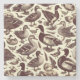 The coasters are gorgeous, a quality feel and heavy weight. They look like a precious archeological find. A rustic stone juxtaposed with a modern floral black and white print. I like the way the print goes slightly imperfect on the cut stone edges giving them a kind-of natural beauty.