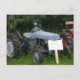 A close up photograph of a dusky blue old vintage tractor with a handmade for sale sign propped up against the front, with a hint of a red tractor alongside it. Great for vintage farm lovers.