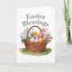Celebrate the joy of Easter with this elegant vintage-inspired greeting card featuring a charming wicker basket filled with colorful Easter eggs and blooming spring flowers. The heartfelt message, "Easter Blessings", adds a touch of warmth and faith, making it perfect for sending well wishes to family, friends, and loved ones. it is customizable to make it your own!