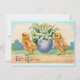 This Easter brunch invitation features a vintage Easter image, of chicks carrying an egg full of flowers. The border and background colour, and text on the back, can be customised as needed.