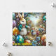 A vintage painting of the Easter Bunny, surrounded by glossy Easter eggs and four small children. This would be a great card for a child who loves collecting all Easter memorabilia. It will create happy memories. Room for writing on the back of the card under a small version of the front picture. Created with the assistance of BING.