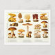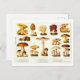 This postcard features a reproduction of a vintage botanical illustration of various edible mushrooms.